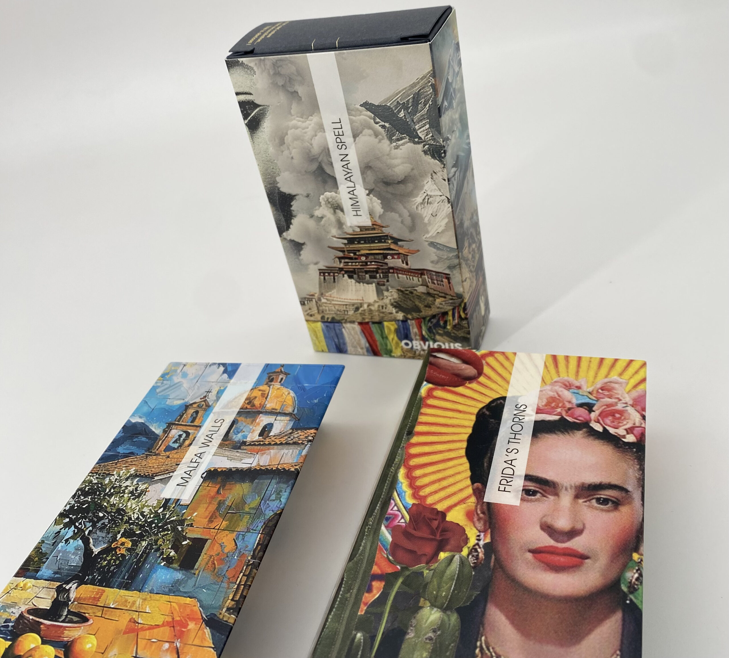 La marque française Obvious a une fois de plus choisi Pozzoli pour réaliser l’emballage de ses dernières fragrances : Frida’s Thorns, Malfa Walls et Himalayan Spell.